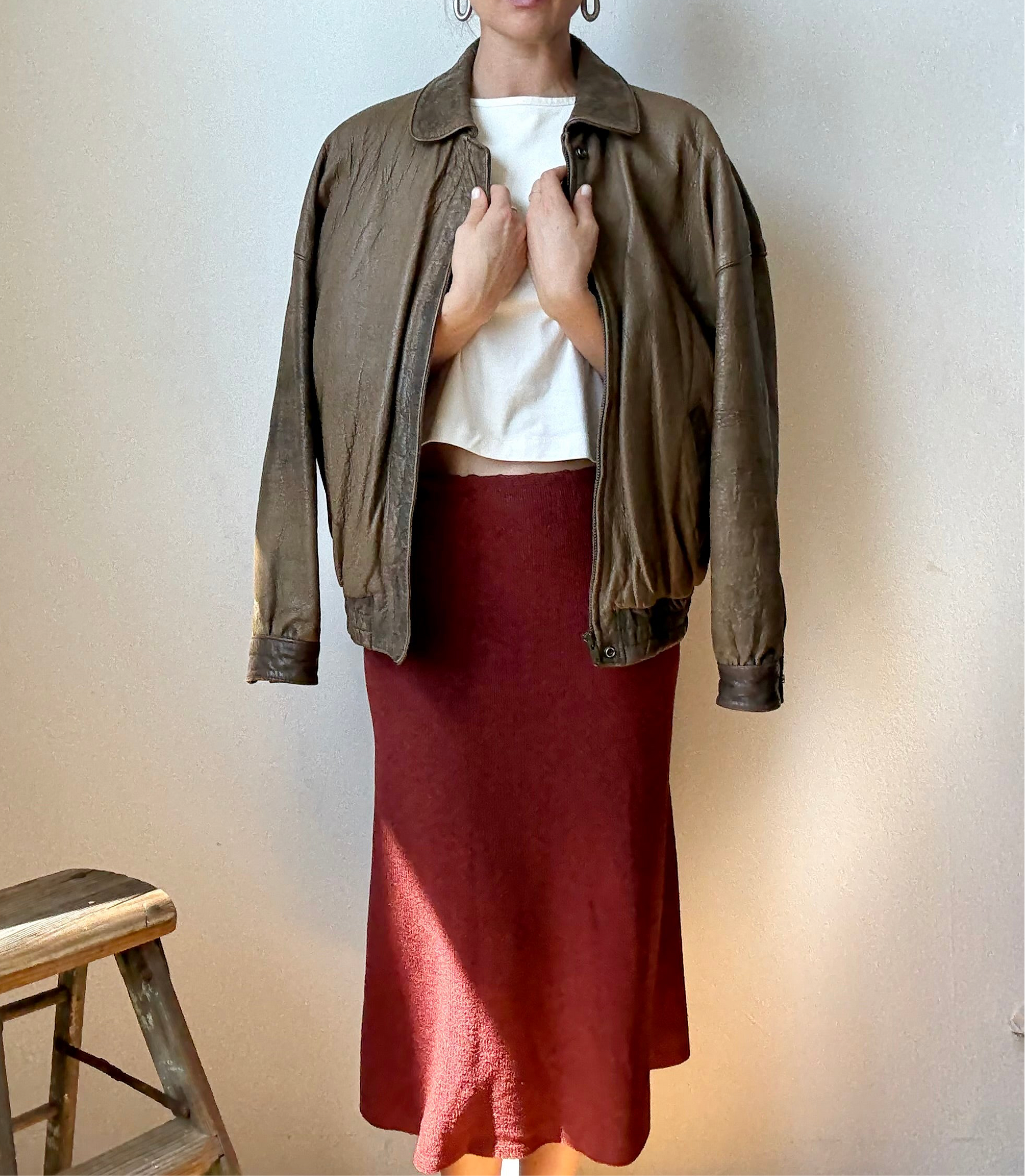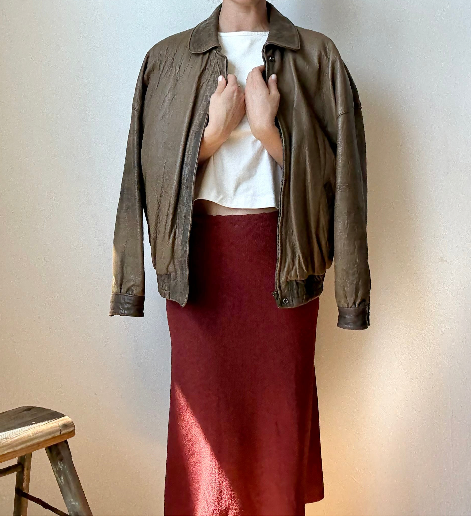 DETAILS: Buttery soft vintage Luis Alvear bomber jacket, “Exclusively For The Brass Rail” collection, size small. Crafted from rich, distressed brown leather with a classic bomber silhouette, this jacket features a full zip, snap collar, snap bottom, elasticized hem, and lined interior. Excellent condition!