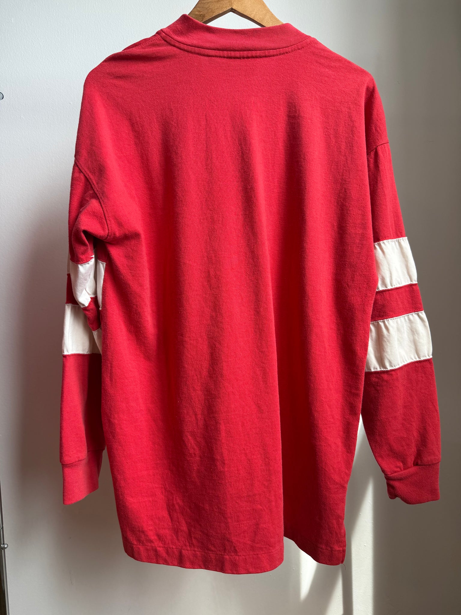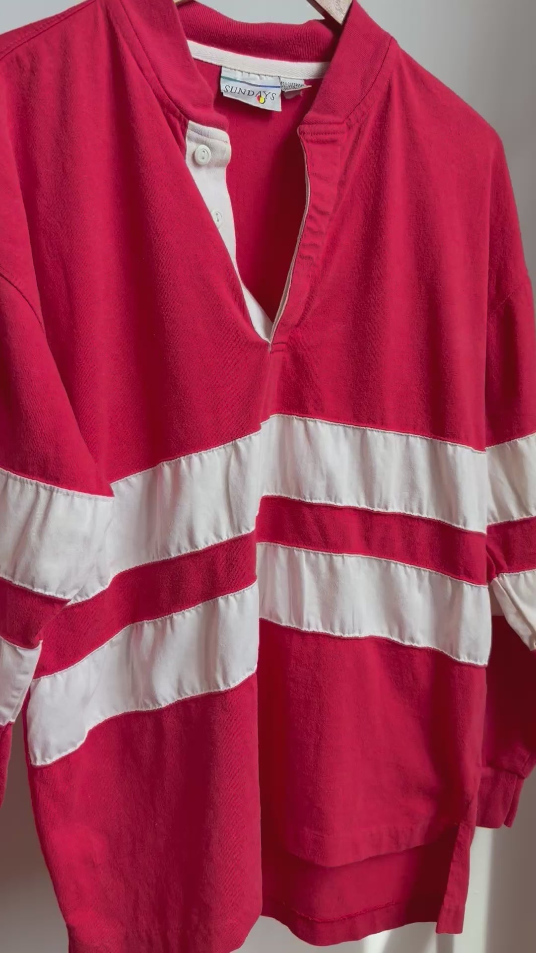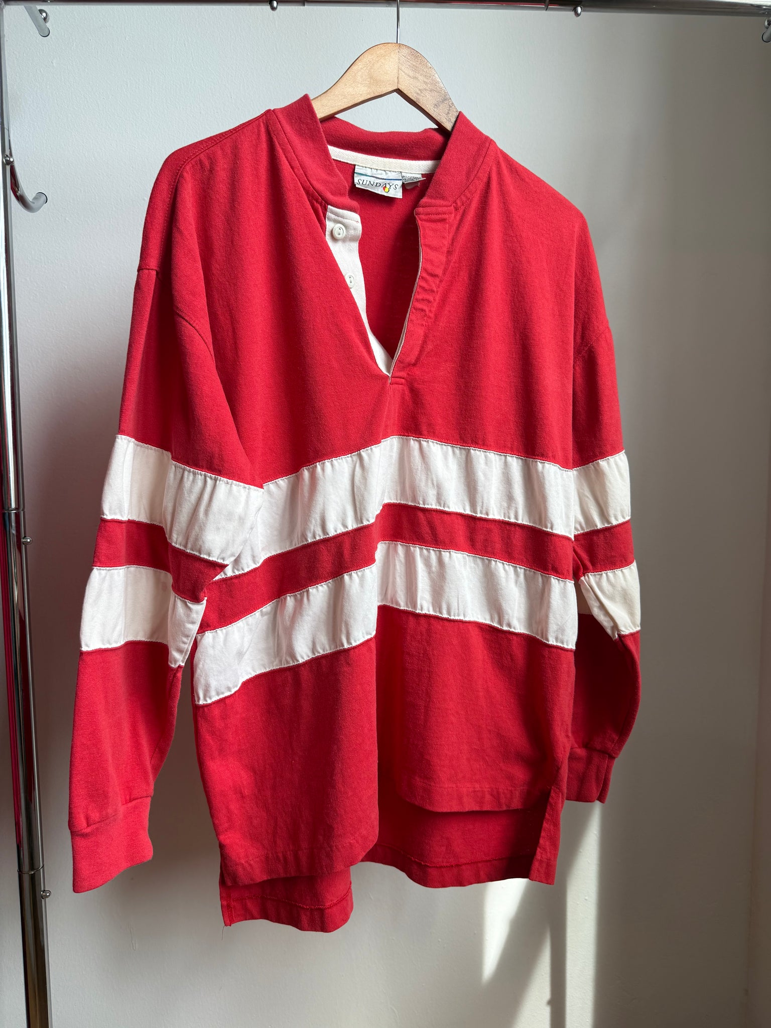 DETAILS: 90's Henly. Red and white striped, Button front.